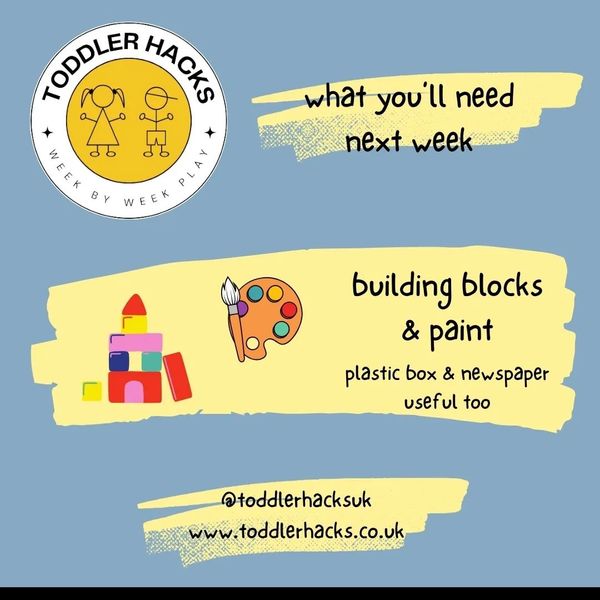Next week all you will need are some building blocks and paint. I've linked some that are on Amazon but hopefully it's things you will already have in your home.