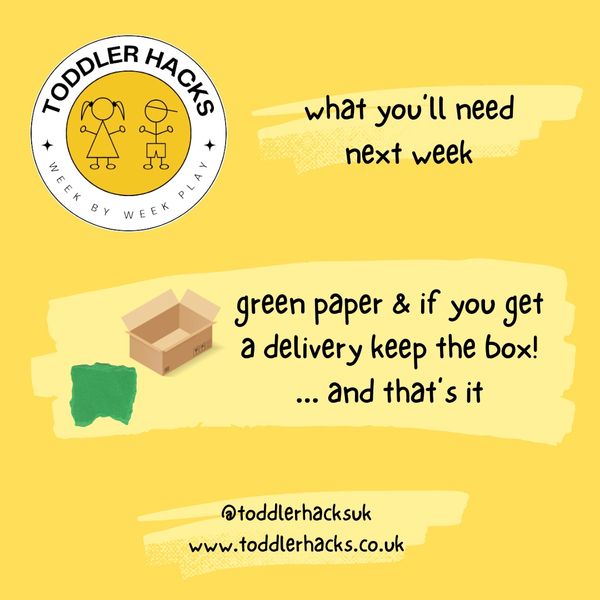 Next week all you will need is some green paper! Plus if you get a cardboard box with a delivery then please keep it!