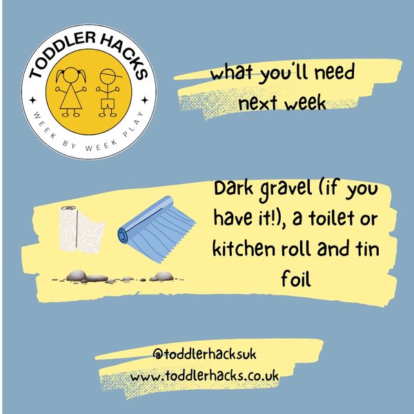 Next week you'll need some dark gravel (if you have any from a fish tank set up or outside area), a toilet or kitchen roll and tin foil.