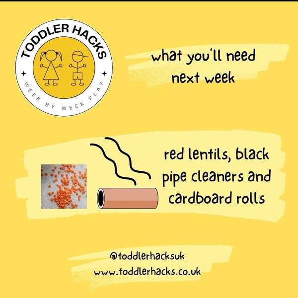 Next week you'll need some red lentils, black pipe cleaners and cardboard rolls.